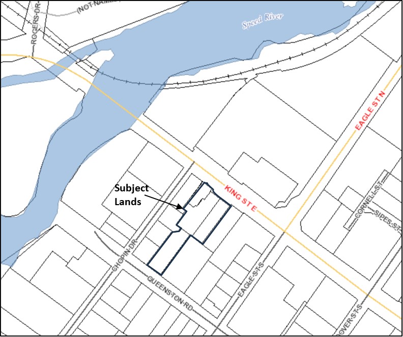 The City has received an Official Plan and Zoning By-law Amendment application to permit a 40 storey mixed use building containing 475 residential units and 150 sq. m. of commercial space. Proposed changes to regulations include height and density increase. A public meeting for this application will be held on May 5, 2026 at 6:30 pm at Old City Hall, Council Chambers, located at 46 Dickson Street.